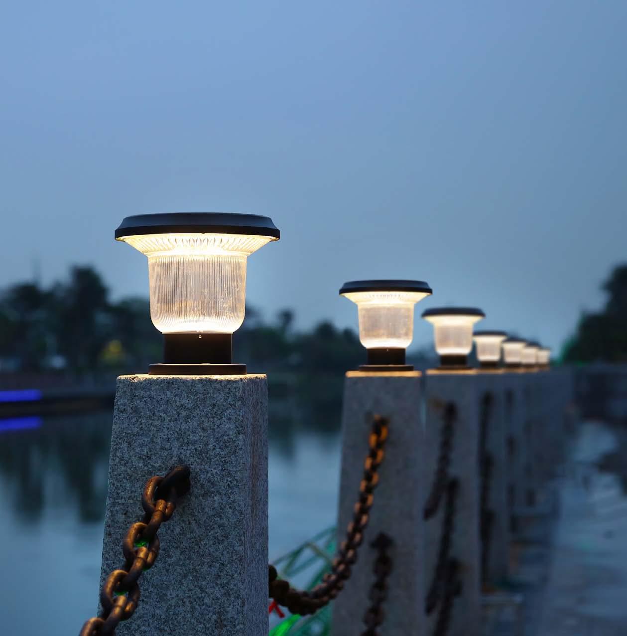 Столбовой солнечный светильник с прозрачным рифлёным плафоном. Два дизайна.