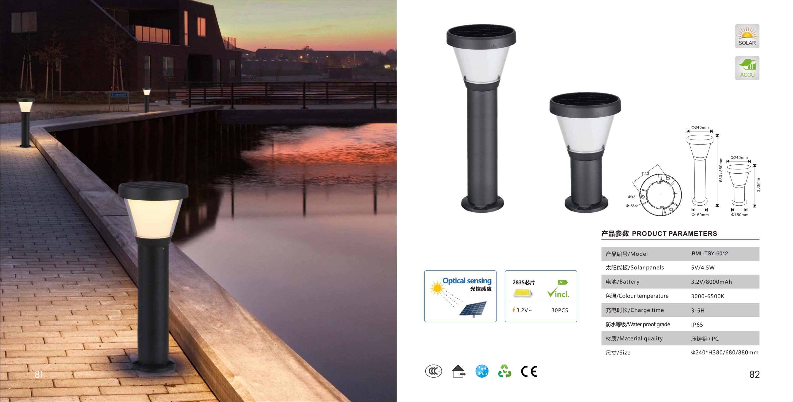 Столбиковый светильник с факельным конусным плафоном. Солнечная панель встроена, оптический датчик. 30 светодиодов 2835.
