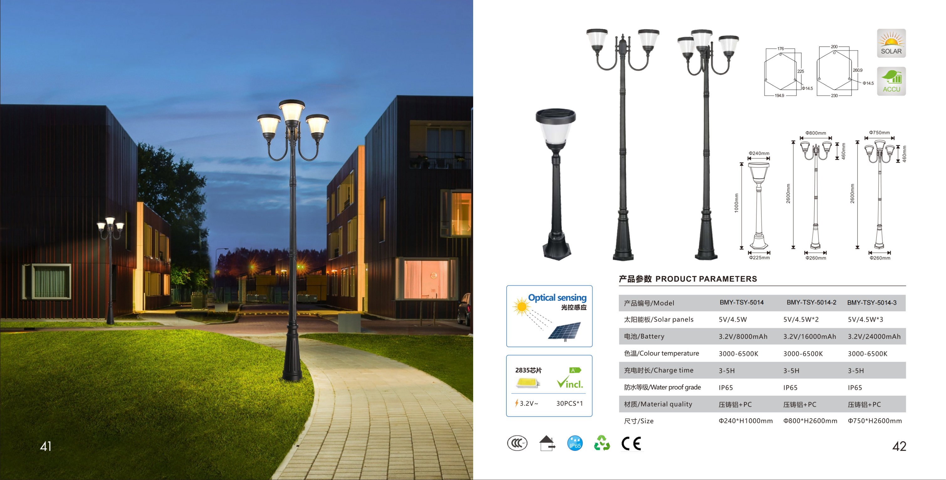 Европейский садовый фонарь с конусным плафоном. 1, 2 или 3 головы на декоративном столбе. Солнечная панель встроена.