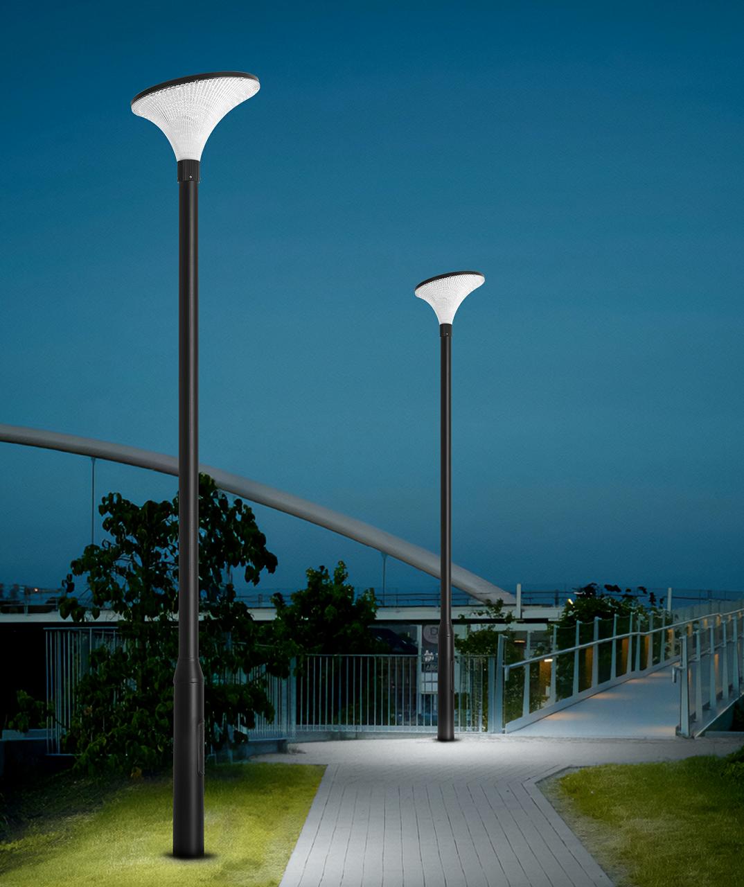 Элегантный садовый фонарь с грибовидным плафоном и встроенной солнечной панелью. Корпус из литого алюминия, плафон из поликарбоната с защитой от UV. Также доступна версия для электросети AC 180-265V (30W/50W).