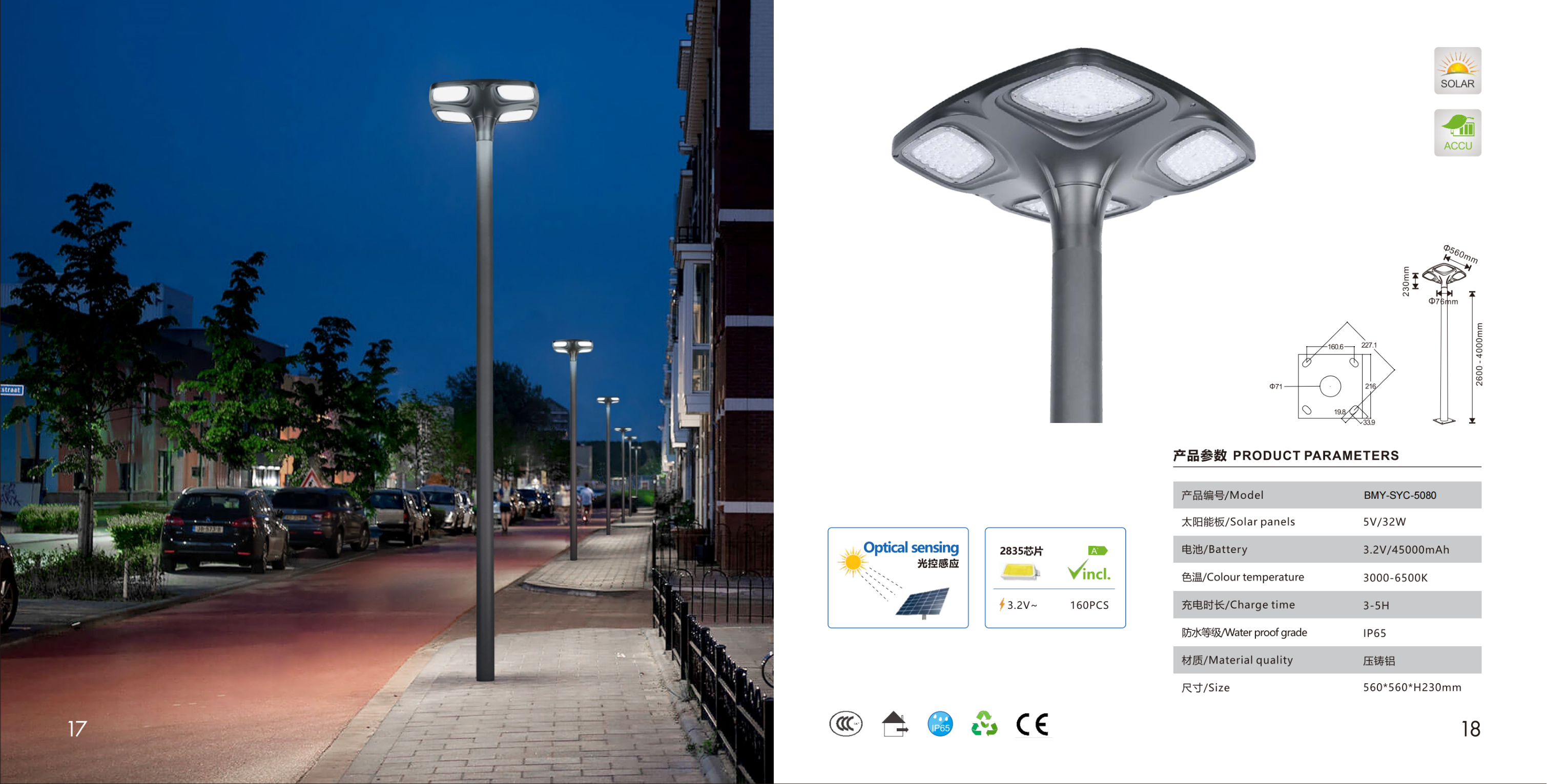 Четырёхпанельный парковый фонарь с квадратным плафоном. Солнечная панель встроена, оптический датчик. 160 светодиодов 2835.