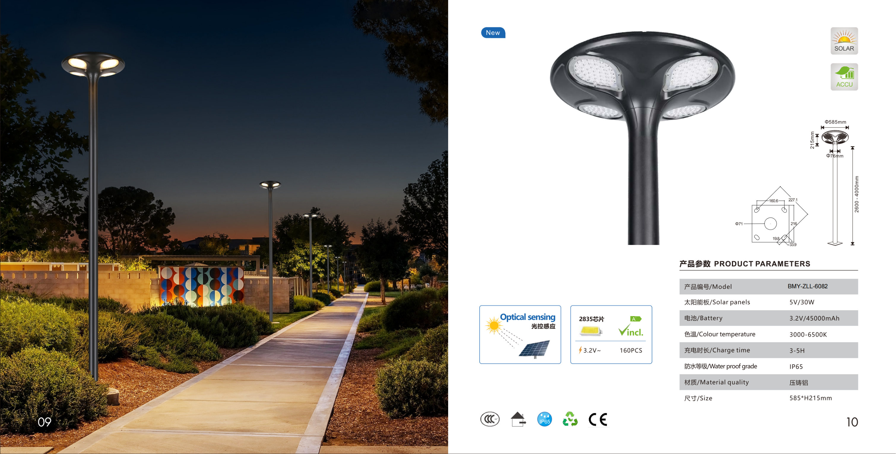 Двуглавый парковый фонарь с округлым плафоном. Солнечная панель встроена, оптический датчик. 160 светодиодов 2835.