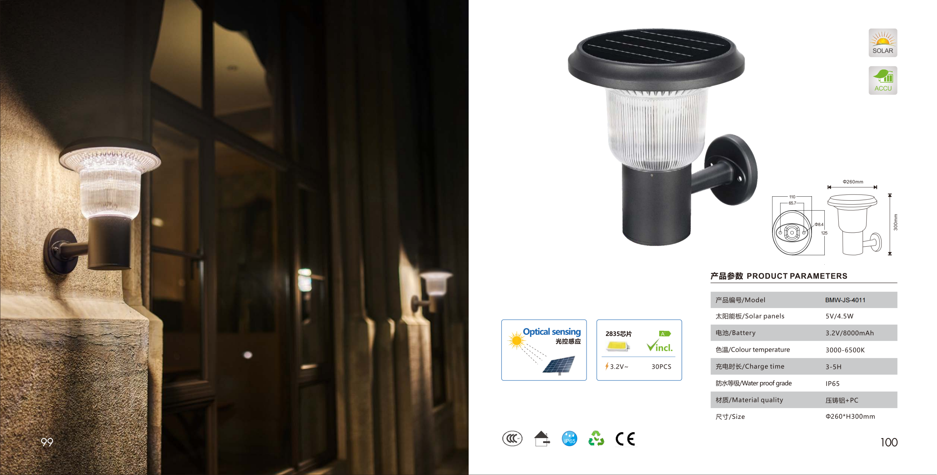Столбовой светильник с конусным плафоном. Солнечная панель встроена, оптический датчик. 30 светодиодов 2835.