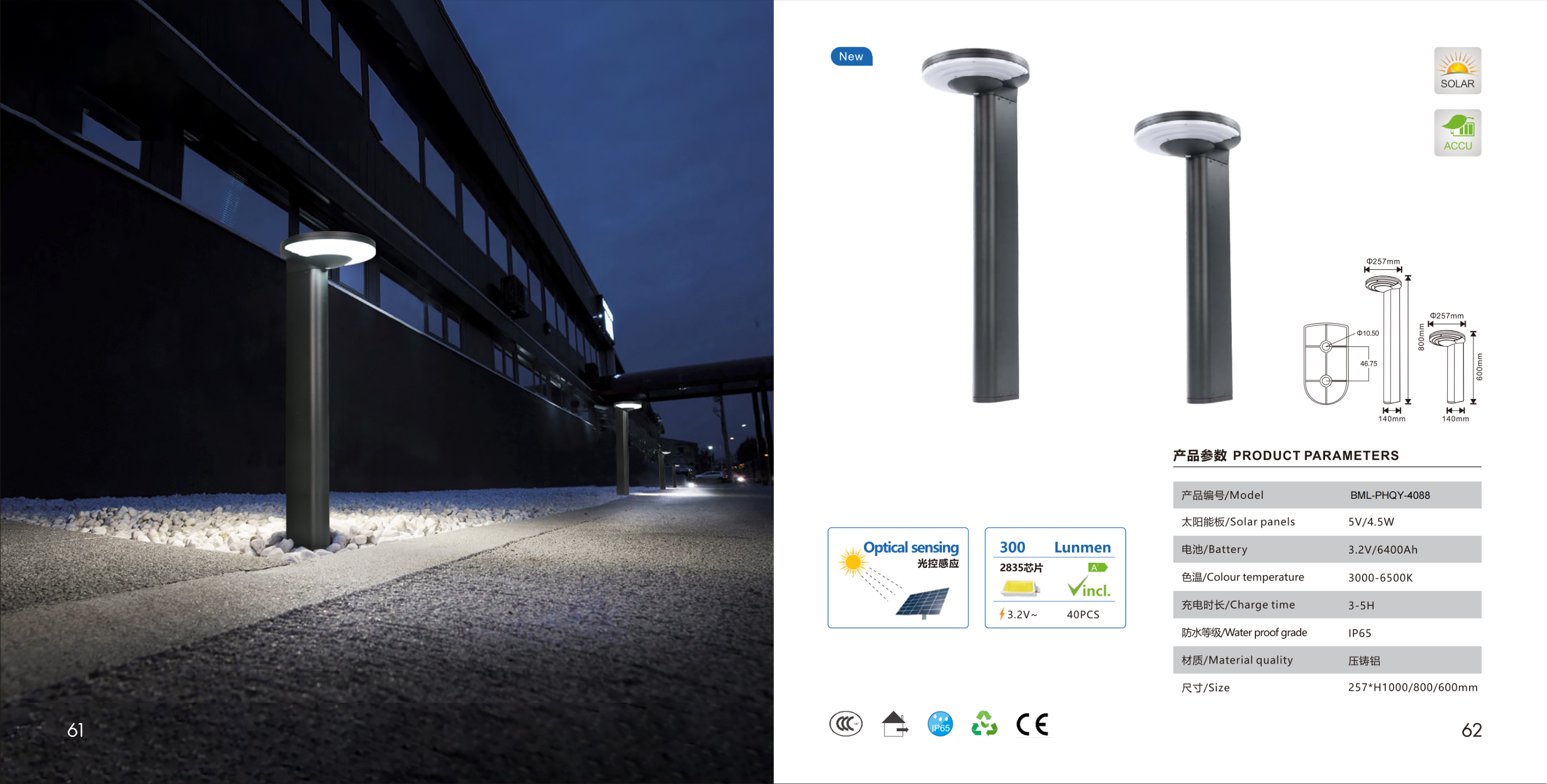 Современный столбиковый светильник с круглым плоским плафоном. Солнечная панель встроена, оптический датчик. 300 люмен, 40 светодиодов 2835.