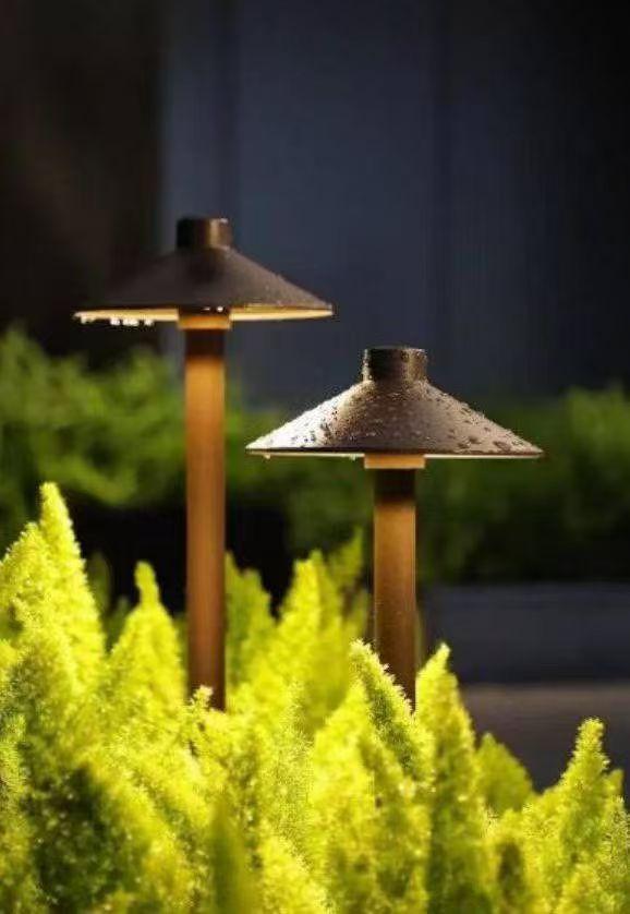 Садовый светильник с конической шляпкой. Чёрный или кофейный цвет. Со штыковым или фланцевым креплением.