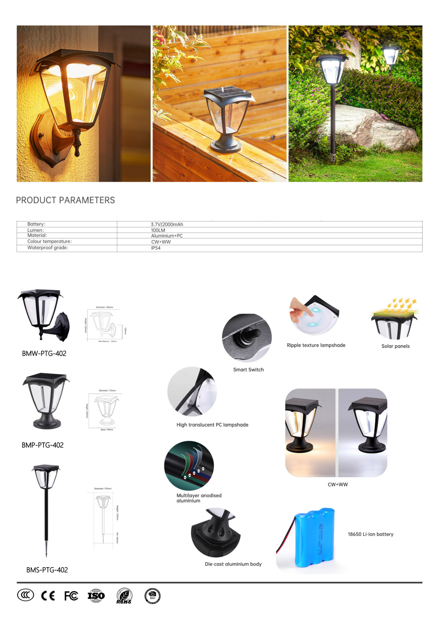 Классический фонарь с рельефным текстурным плафоном. Три варианта: настенный, столбовой, на колышке. Многослойное анодирование, литой алюминий. Умный выключатель. 100 люмен.