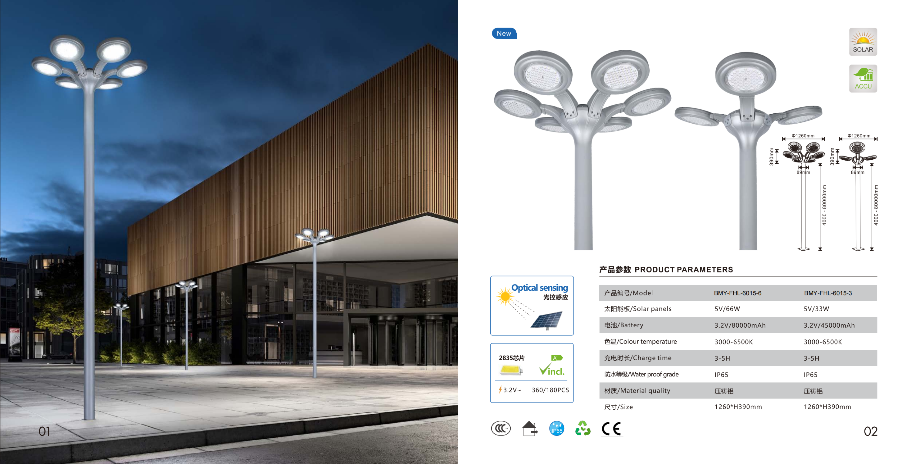 Декоративный парковый фонарь в форме цветка с 6 или 3 лепестками. Солнечная панель встроена, оптический датчик освещённости. Светодиоды 2835.