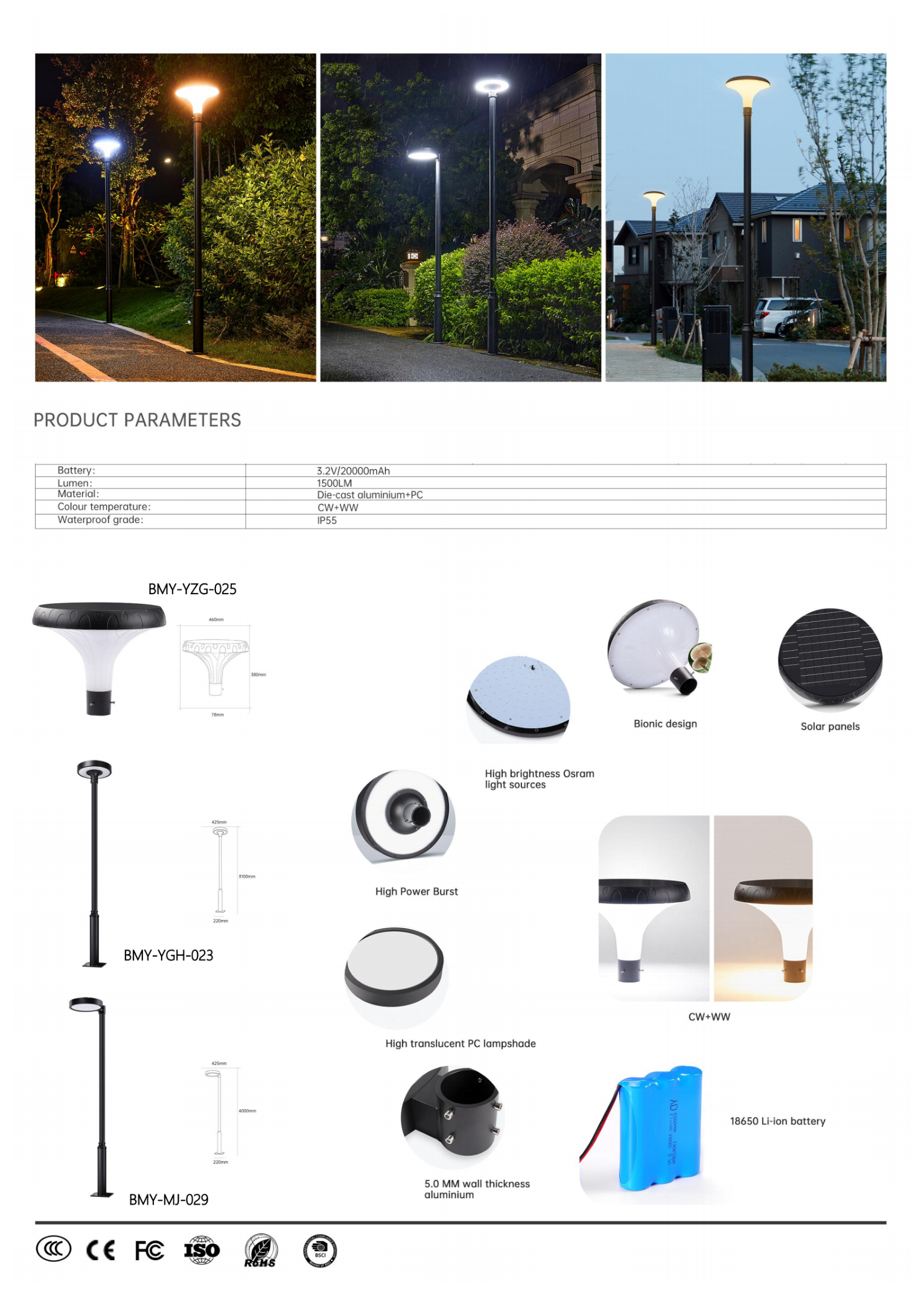Современные парковые фонари с бионическим дизайном. Высокояркие светодиоды Osram, толщина стенки алюминия 5.0мм. PC-плафон высокой прозрачности. 1500 люмен.