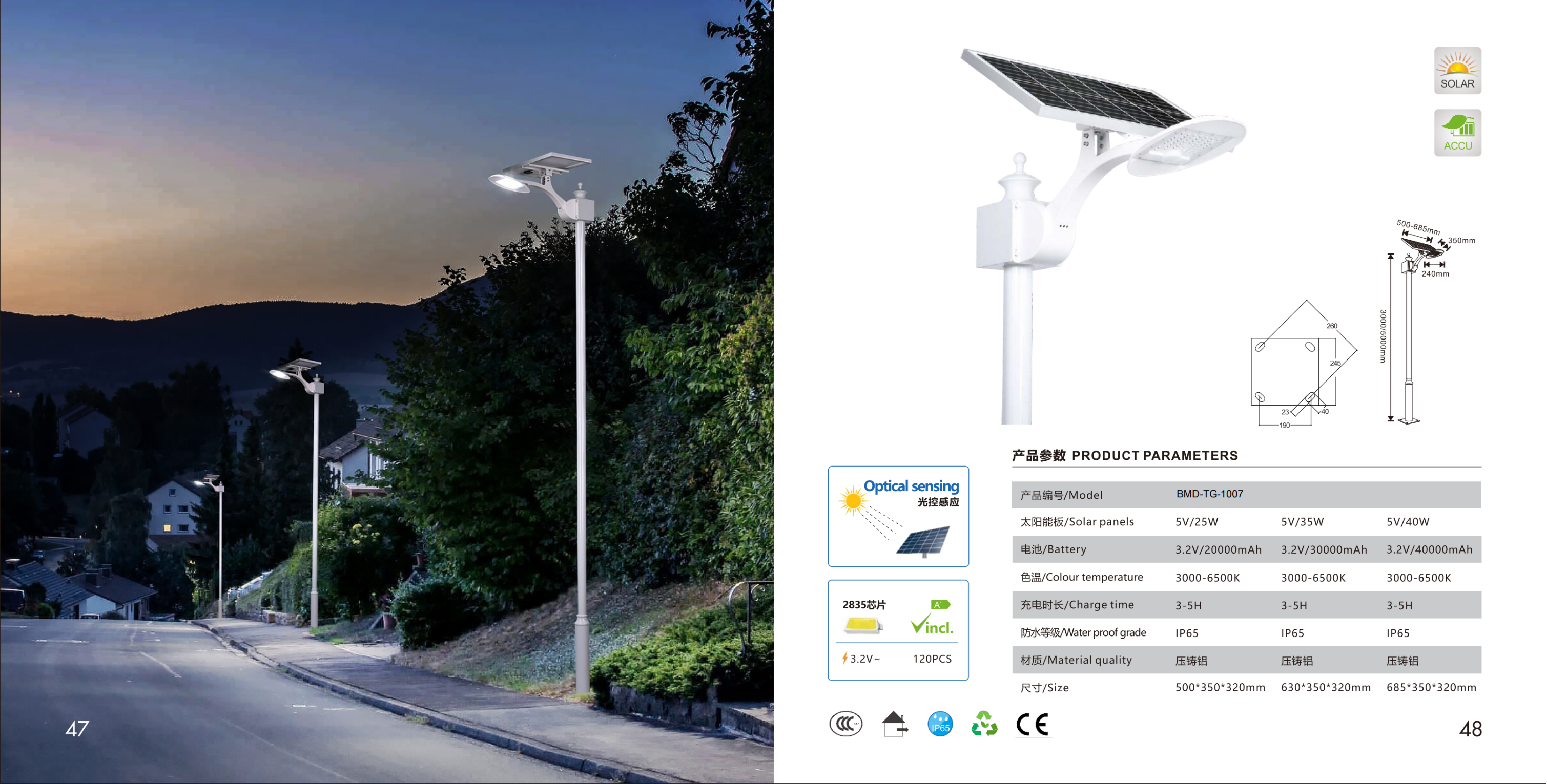 Двуглавый уличный фонарь с раздельной солнечной панелью. Оптический датчик, светодиоды 2835, 120шт. Три варианта мощности.