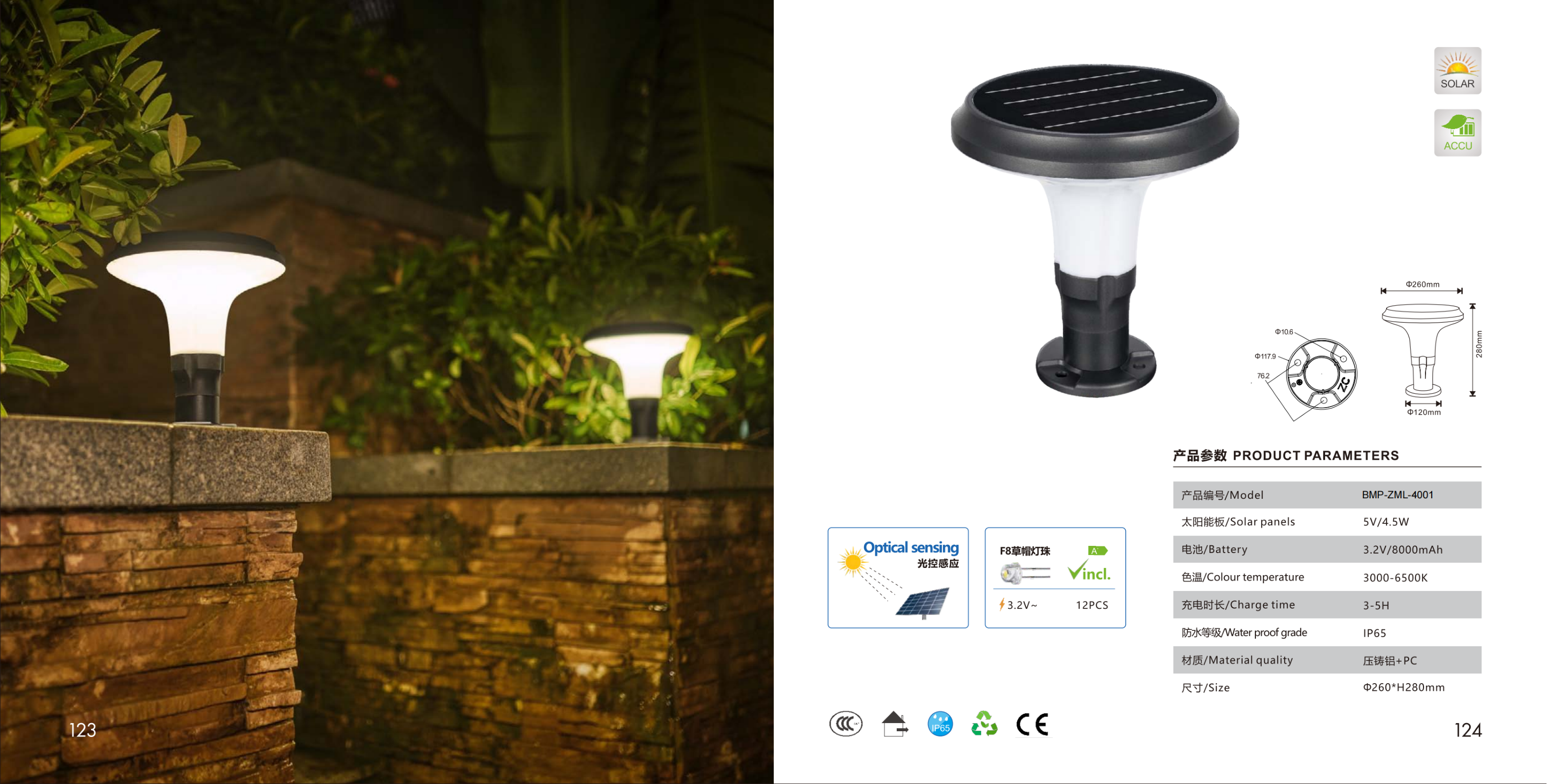 Настенный светильник с цилиндрическим рифлёным плафоном. Солнечная панель встроена, оптический датчик. 30 светодиодов 2835.